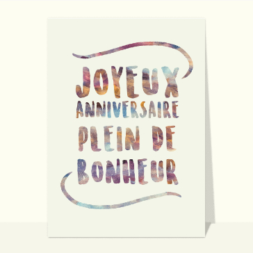 Voici les thèmes abordés sur cette carte : amour, anniversaire, fête, bonheur, santé, chaleur, amitié, joyeux, créativité, Éclat, surprises, bien-être, rires, exceptionnel