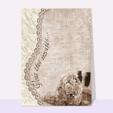 Voici les thèmes abordés sur cette carte : fleur, invitation, mariage, robe, jaune, simplicité, douceur, romance, roses, cordialité