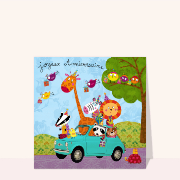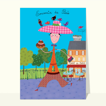 Voici les thèmes abordés sur cette carte : fleur, animaux, enfant, soleil, paris, joyeux, coloré, graphique, décoratif, personnage, eiffel